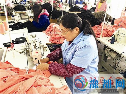 近年来,泌阳县积极落实各项就业政策,加强部门协调配合,广泛动员社会各方面力量,千方百计扩大就业,仅2015年实现城镇新增就业人员8072人。图为该县留守妇女在泌阳县丰盈制衣有限公司赶制产品。