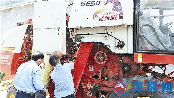 日前,泌阳县为充分发挥农业机械的主力军作用,确保全县小麦丰产丰收,组织人员进村入户宣传农机具安全知识。图为工作人员正在对农机具进行调试维修。记者 侯伟峰 通讯员 高 莉 摄影报道