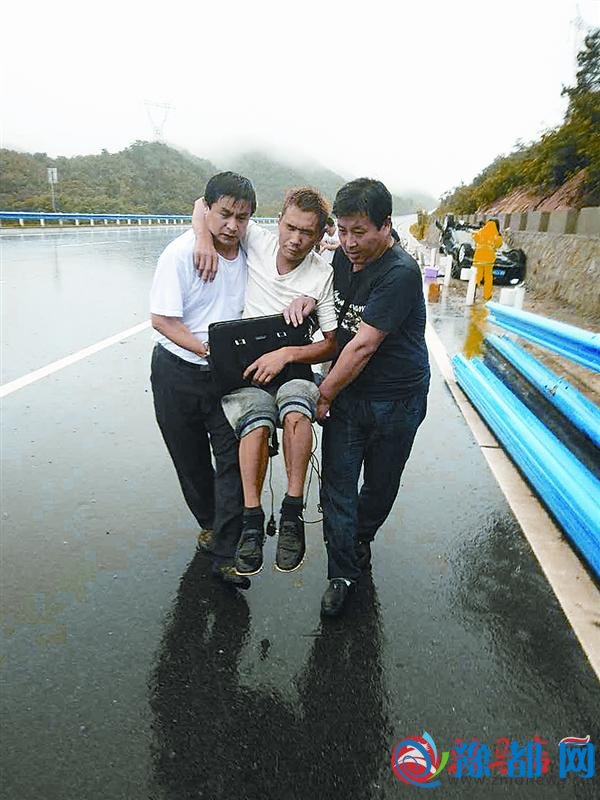 不顾自己全身湿透,吕绍军首先与大家一道用撬杠将驾驶室撬开,然后和乘客一起小心翼翼地将车内的2名伤者救出。