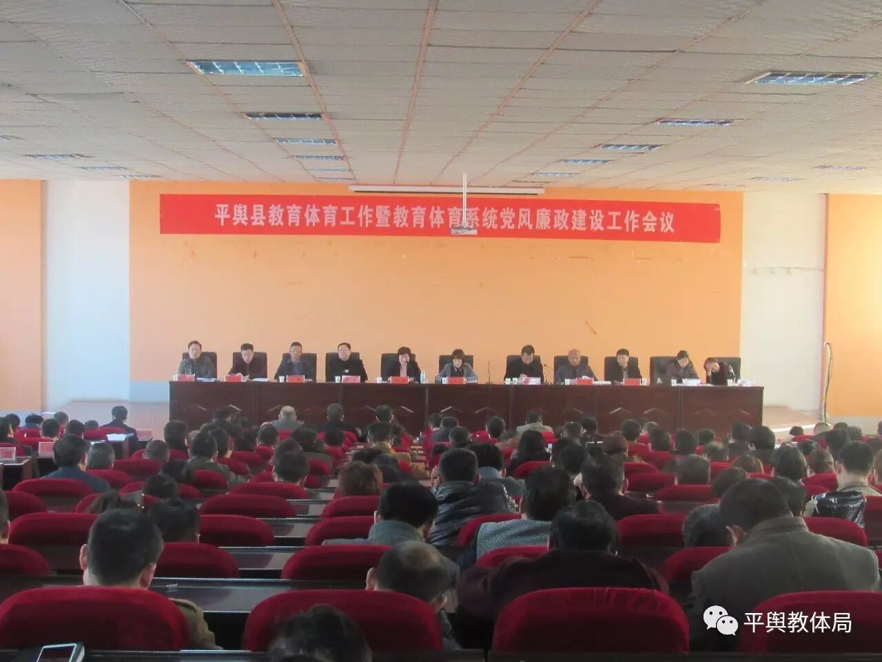 2017年3月7日下午,我县教育体育工作暨教育体育系统党风廉政建设工作会议在二中西校区召开,平舆县人民政府副县长朱瑞霞、各乡镇,街道分管教育工作的副镇长及县教体局领导班子成员、局机关股室股长、全县各级各类学校校长参加了会议。会上,县政府副县长朱瑞霞、县教体局局长郭凤梅分别作了重要讲话。会议由县政府机关党总支书记王国明主持。