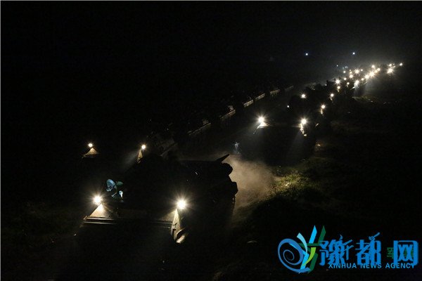 在夜色中,蓝军战车秘密进入阵地。张红磊 摄