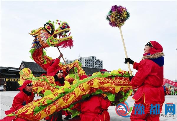 2月14日,汝南县舞龙艺人在莲花广场表演。春节期间,该县举办了斗鸡大赛、非遗展演、舞龙舞狮等丰富多彩的民俗活动,欢庆新春佳节。 记者 刘仁忠 通讯员 孙 凯 摄影报道