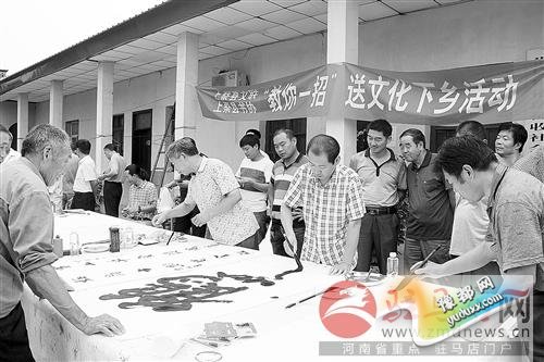 近日,由上蔡县委宣传部、上蔡县文联主办的送文化下乡活动在该县邵店镇文化服务中心举办。此次活动是该县2014年“欢乐中原、文明上蔡”群众文化活动及“文化惠民工程”系列活动的重要组成部分。来自该县的20多位书画家走进基层,与农民书画爱好者进行了现场交流。通讯员 张海波 摄