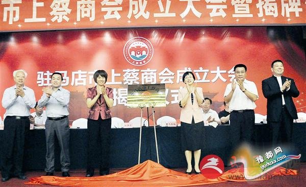 与会领导同志为驻马店市上蔡商会成立揭牌。