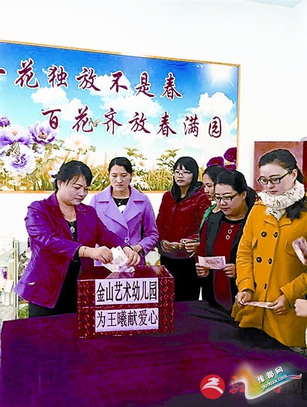 小王曦的父母为遂平县和兴乡普通农民,面对高昂的医疗费用,全家陷入了困境。小王曦的病情牵动着金山艺术幼儿园全体教师的心,在校长的号召下,迅速发起捐款活动。