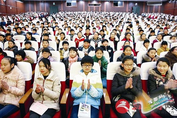 郑渊洁的讲座博得学生们的阵阵掌声。