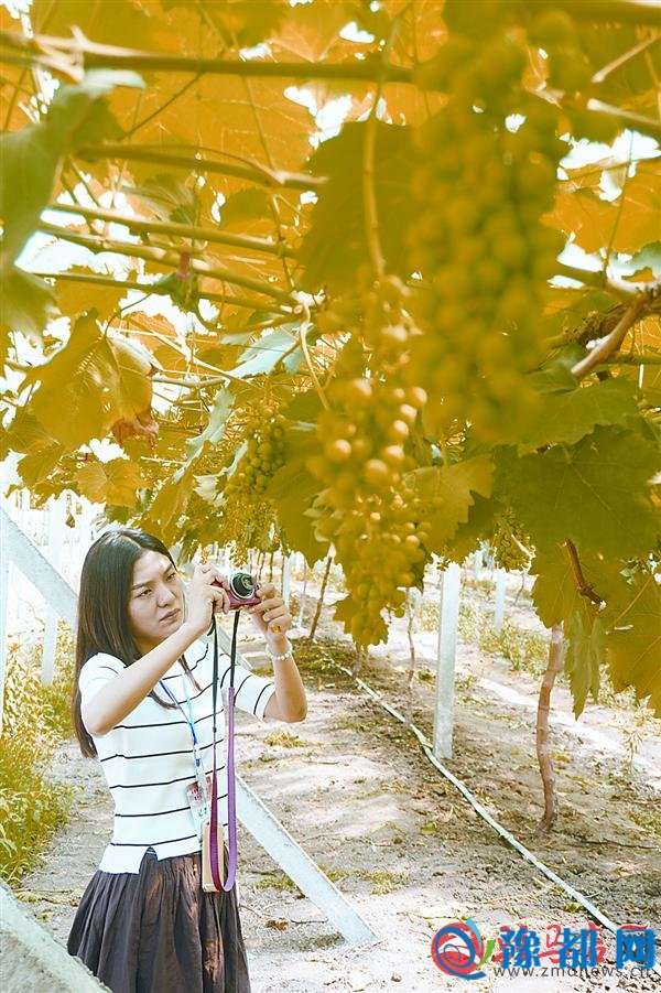 上午10时许,记者们来到了杰美庄园。在葡萄种植区,虽然眼下葡萄还没有成熟,但看到一颗颗晶莹饱满的葡萄,记者们纷纷拿起相机拍照。