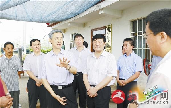 省委副书记邓凯(左三)在市委书记余学友等领导的陪同下在上蔡县黄埠镇调研。 记者 弓华静 摄