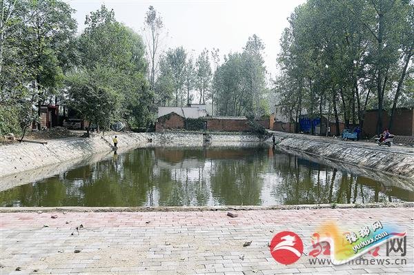 清澈的池塘边,一个美丽的小游园即将建成。