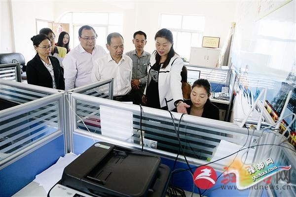日前,市、区农业局相关负责人一行到市天中生态农业科技有限公司、魏庄新佳园种养殖农民专业合作社调研电子商务信息平台建设及运营情况。近年来,我市“互联网+农业”发展迅速,越来越多的企业能享受到“互联网+农业”带来的便捷。图为市天中生态农业科技有限公司负责人介绍如何利用电子商务信息平台开展销售。记者 王朝朝 摄