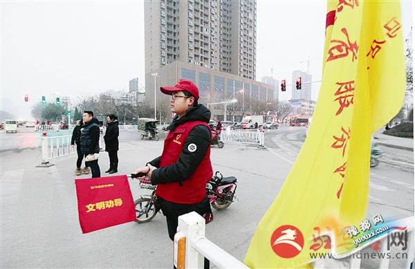 《文明交通劝导 志愿者在行动》由河南新闻网-豫都网提供,转载请注明出处:http://zmd.yuduxx.com/tianzhong/306091.html,谢谢合作!