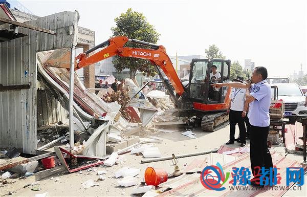 近日,驿城区综合执法局组织执法人员对市中心城区违法违规建筑进行集中拆除。图为拆除现场。 记者 马国省 摄