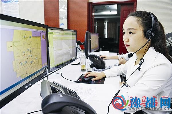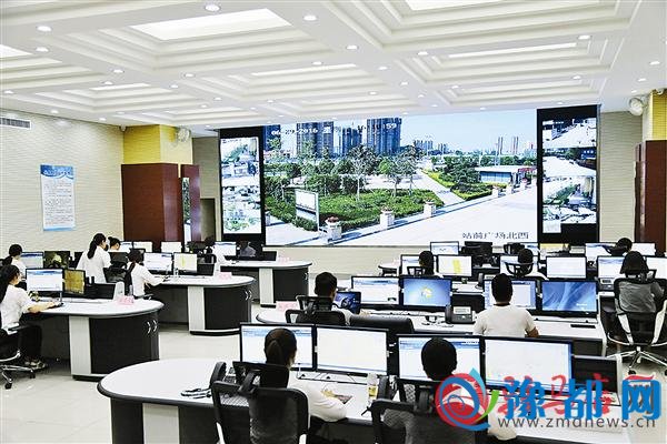驻马店市智慧(数字化)城管系统于今年5月1日正式上线运行。据了解,驻马店市智慧城管系统通过市民拨打12319热线、采集员上报等途径正常接入城市管理各类案件,对城市管理的可视化、动态化监控,通过移动终端实时查看及回传实况视频,对问题随时随地发现、上报、核查及督办,让政府与群众之间良性互动,实现第一时间发现问题,第一时间处置问题,第一时间解决问题,从而推进我市双创工作更好地开展。图为驻马店市智慧城市管理中心监控大厅。 记者 吴 波 摄