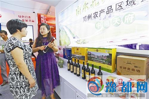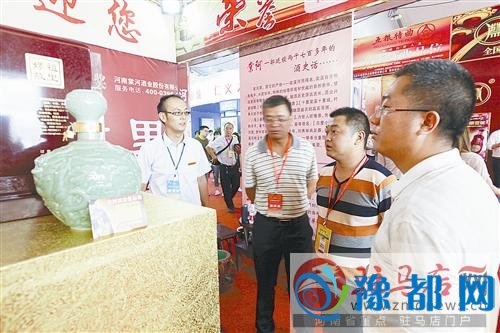 来自邓州展区的河南三省雄关酒业的参展商在向顾客介绍系列黄酒产品。