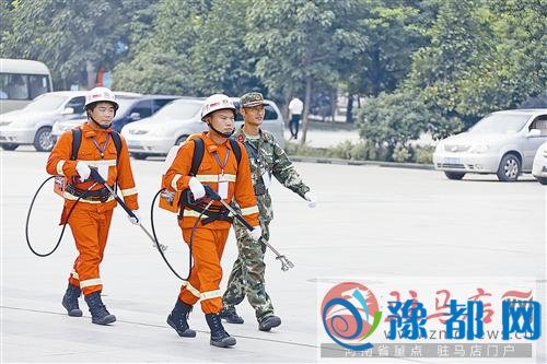 消防官兵加强巡逻,确保大会顺利召开。 记者 郭绪明 摄