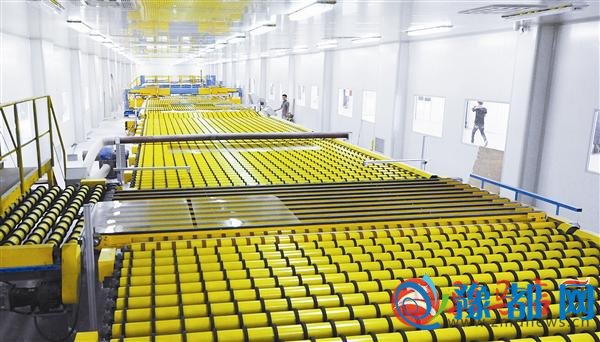 总投资30亿元的河南省海川电子玻璃有限公司超薄电子玻璃生产线,正在生产超薄电子玻璃。记者 弓华静 摄