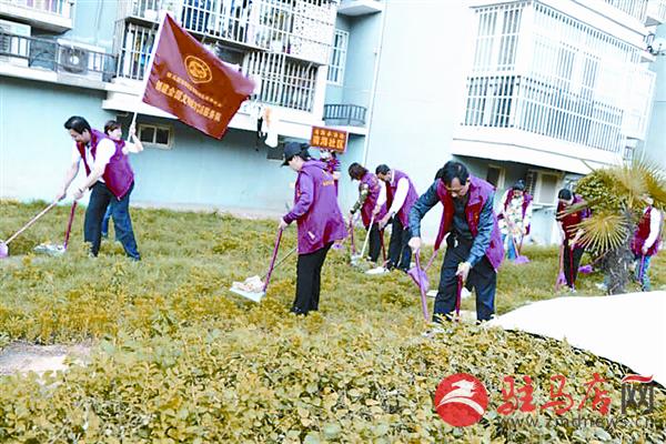 昨日上午,驿城区南海街道办事处的干部职工在清理家属院草地上的垃圾。创文志愿者结合街道实际,创新活动载体,掀起创文工作新高潮。