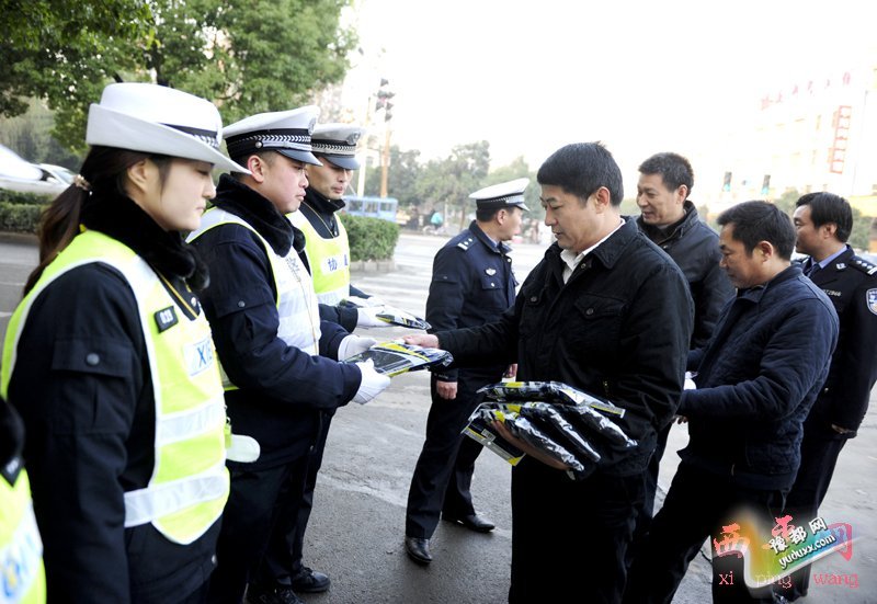 最后,聂晓光一行来到县文化馆前,慰问了正在值勤的交通警察们,并为他们送去了手套等慰问品。聂晓光指出,连日以来,我县出现雨雪天气,全县公安交警高度重视,及早准备,及时发布路况信息,及时清雪融雪,加强交通疏导,有力保障了全县道路交通安全畅通,在此代表广大干部群众向一线民警表示感谢和慰问,希望他们再接再厉,为维护良好交通秩序做出更大贡献。