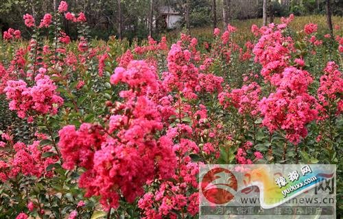 驻马店网讯 (驻马店网记者 凯频)9月12日下午,驻马店网记者在驿城区胡庙乡林业村付庄发现一片约6亩面积的“花海”。这是该村村委主任高富云的苗圃地。种植才一年的紫薇就大范围的开花了,花团锦簇,姹紫嫣红,芳香馥郁。