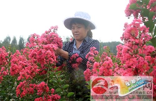 紫薇是经市民投票评选、市人大常委会批准的驻马店市花。去年春季,高富云为给村民做调整种植结构、提高经济效益的示范带头,在自己种植粮食的责任田里繁育花木、果木、种植紫薇苗2万多株。今年秋季这些紫薇就开始比着开花,由于花开太盛,幼枝都被压弯,高富云不得不将花掐掉一些,以减轻花枝的“负担”。