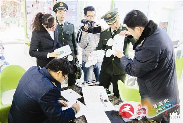 为确保辖区市场消防安全,近日,市工商局驿城分局联合市消防部门对辖区内消防器材进行专项检查,通过检查有效清理了“三无”产品、假冒侵权商品,查处了无证无照消防器材经营户。图为市工商局驿城分局和市消防部门工作人员在检查消防器材并录像取证。通讯员 剧永征 摄