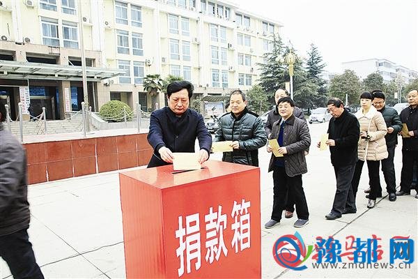 近日,驿城区举行“送温暖、献爱心”捐赠仪式,区直机关人员依次走到捐款箱前进行捐款。经该区民政部门统计,捐款30多万元,这些捐款将用于救助贫困群众和特殊群体等,为他们送去党和政府的温暖。记者 郑付生 通讯员 米 山 摄影报道