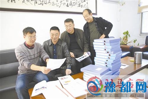 东风街道党工委书记薛冰等一班人在完善创文资料。