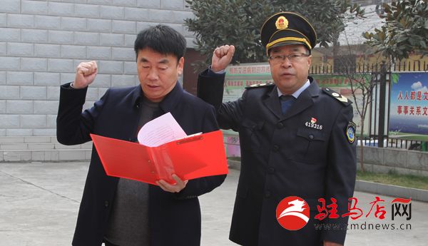 驻马店网讯(通讯员范涛)“我是卫生监督员,是大众健康的卫士,我郑重宣誓,切实履行法律赋予的职责,严格执法,恪守职业道德,廉洁奉公,不徇私情,人民的利益高于一切,无愧于闪闪的国徽,不负人民的重托。”12月4日是国家宪法日,驿城区卫生监督所50余名卫生计生监督员面向国旗庄严宣誓。