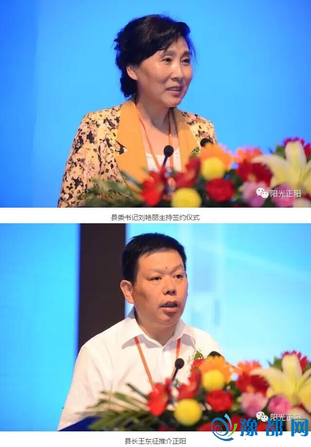 对接会上,共签约河南豫能新能源有限限公司与正阳县人民政府;北京首创环境投资有限公司与正阳县城市管理执法局;第九家集团与正阳县政府办;北京新莱集团与正阳县委办;北京中清高洁能源技术发展有限公司与正阳县产业集聚区;河南虹腾实业集团有限公司与正阳县政协办;第九家集团中原公司、正阳县招商办;国能生物质发电有限公司与正阳县人大办等20个项目。(高万宝 孟祥瑞 贺永明) 7月13日上午, 第四届中国正阳互联网+花生产业高峰论坛暨河南省优质花生产销对接洽谈会在驻马店市会展中心开幕。省农业厅副厅长邹庆鹏,省粮食厅副厅长刘大贵、副市长付自成、中央电视台七套常务副主编季林、农业部油料所花生研究中心主任雷永、市农业局局长毕俊德、市农机局局长鲍秋仁、县委书记刘艳丽、县人大常委会主任李保国、县政协主席李贵喜等国家、省、市、县有关部门负责同志出席开幕式。县长王东征主持开幕式。